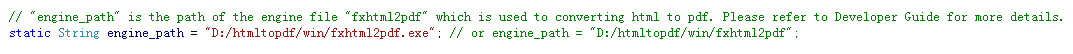 For html2pdf demo, you should contact Foxit support team or sales team to get the engine files package for converting from HTML to PDF at first. For more details about how to run the demo, please refer to section 3.37 “HTML to PDF Conversion”.