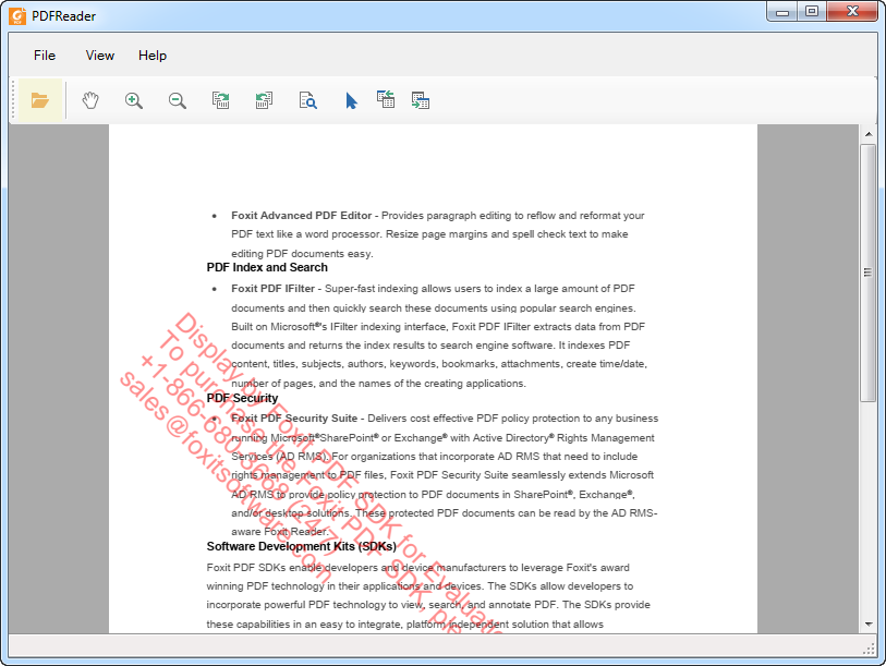 Developers should purchase licenses to use Foxit PDF SDK in their solutions. Licenses grant users permissions to release their applications based on PDF SDK libraries. However, users are prohibited to distribute any documents, sample codes, or source codes in the SDK released package to any third party without the permission from Foxit Software Incorporated.